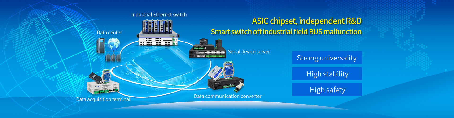 UOTEK, an expert in industrial communications and networking, is constantly dedicated to providing professional IoT solutions which focus on securing the industrial network to customers. With the support of numerous advanced products, we at UOTEK have become the leader who aims to protect the industrial network. Our main products, including industrial Ethernet switches, serial device servers, smart remote I/O, wireless transmission devices, etc., win huge appreciation around the globe.